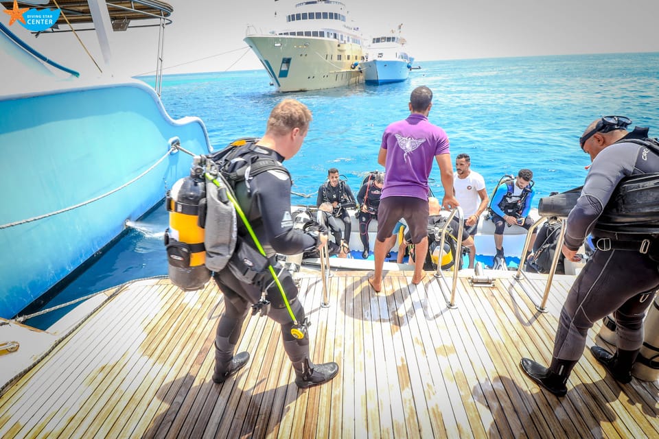 Start with pickup from your hotel in Hurghada and head to the diving center. Complete the necessary paperwork and get fitted with your equipment. Depart from the marina to the first diving spot, such as Abu Ramada or Small Giftun Island, known for their crystal-clear waters and abundant marine life.