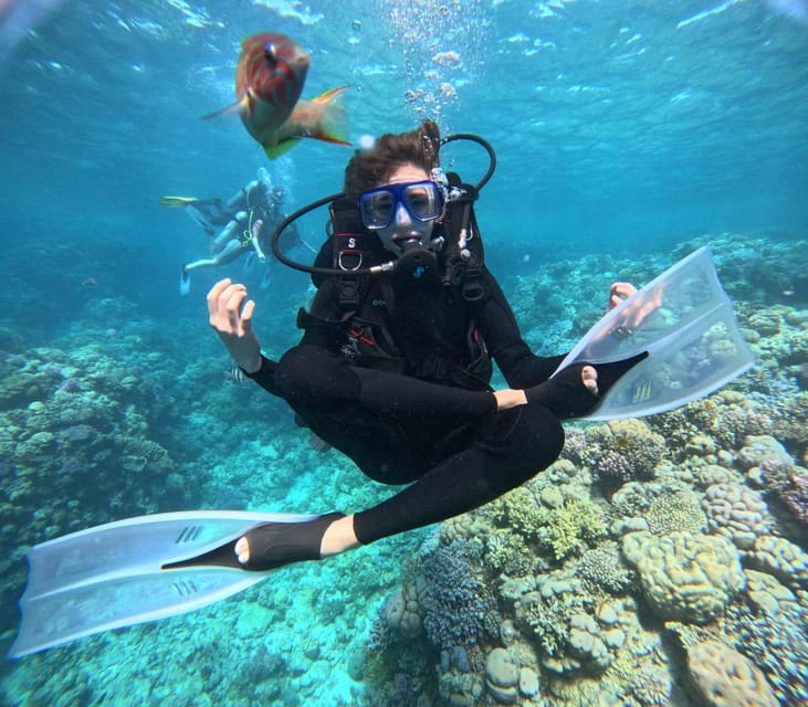 Discover the underwater world of the Red Sea on a beginner’s diving experience. Dive in 2 different locations, and enjoy a delicious lunch on board the boat.